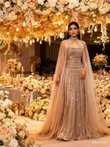 Be the first to review “JC7748-1 Beige beaded evening gown long sleeve water sleeve prom dress ,sequin bridemaid gown ,elegant formal gown”